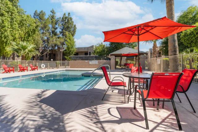 Los residentes pueden disfrutar de una piscina al aire libre de estilo resort (sin calefacción)—perfecta para relajarse durante los cálidos días de Arizona—, así como de un gimnasio completamente equipado para hacer ejercicio cómodamente sin salir de casa. La comunidad también cuenta con un patio bellamente ajardinado, que ofrece un entorno tranquilo y acogedor.